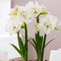 Искристая белизна слегка гофрированных по краю лепестков, небольшое светло-оливковое горло и молочно-кремовые пыльники – разве перед такой красотой можно устоять?! Это и есть изящный, утонченный, нежный и в то же время неприступный амариллис Антарктика, относящийся к группе Сингл. Он просто шикарен! А если учесть, что спустя 4-6 недель после посадки на цветоносе растения распускается в среднем 4-6 огромных (до 20 см в диаметре!) бутонов, тогда понимаешь: эта белоснежная лавина может накрыть с головой!