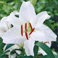 Хотите каждый день, выходя в сад, наслаждаться упоительным ароматом и белоснежной красотой цветущих бутонов? Тогда наш каталог лилий предлагает поистине шикарную и утонченную лилию Сиберия, вырастающую до метра в высоту. С наступлением июля на ее стройном упругом стебле распускаются удивительно крупные бутоны. Слегка волнистые идеально белые лепестки, отогнутые на кончиках к стеблю, подобны невесте, надевшей подвенечное платье с фатой.