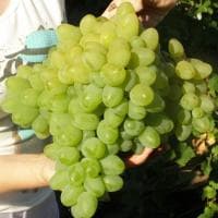 Ягоды слегка вытянутые, крупные – до шести сантиметров, весом в среднем около 18-19 г., желтовато-зеленого цвета. Тонкая, нежная кожица практически не ощутима в момент их употребления в качестве пищи. Мякоть плотная, сочная, имеет насыщенный аромат и оставляет послевкусие сладкой черешни. Крупного размера грозди конусообразной формы имеют среднюю плотность и весят около 700 до 1500 грамм. Уровень сахара довольно большой, кислоты немного.